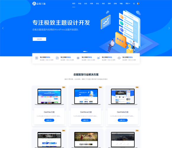 CeoTheme总裁主题是国内优秀的WordPress主题开发团队, 超过6年开发经验,专注WordPress主题开发建站, UI设计,seo等服务;并提供有保障的维护及售后